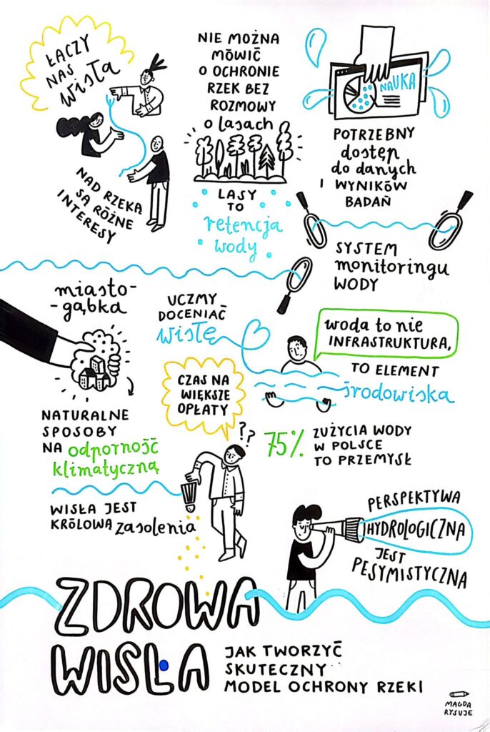 W Fundacji Czysta Rzeka stoimy bardziej po stronie działania, bliżej nam do młodych. Ich głos wybrzmiał na sali. Cieszymy się się, że jeden z sympatyków naszej akcji Operacja Czysta Rzeka, Antoni Chudzicki, podzielił się swoim spojrzeniem i doświadczeniem jako szefa sztabu akcji w Kielcach. Wybrzmiała także rozmowa o prawach natury i o tym, czy Wisła może podążać drogą uznania jej praw tak jak Odra.
