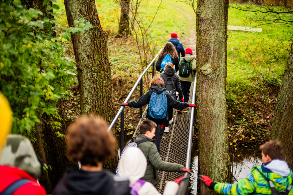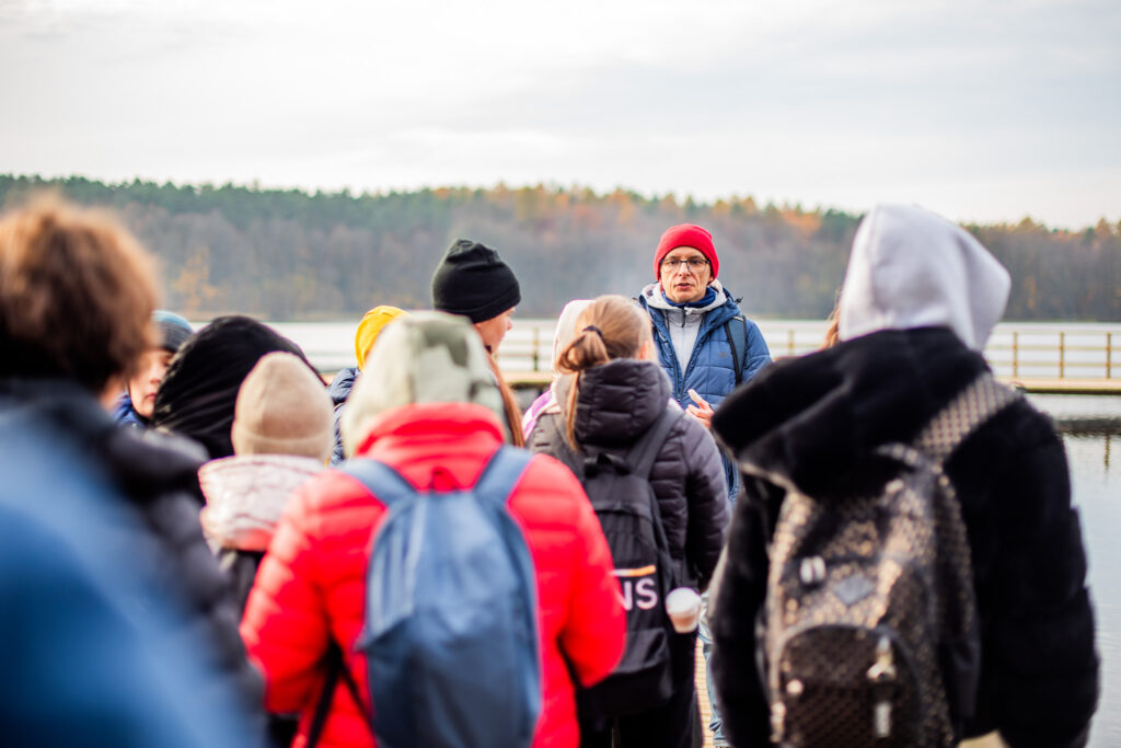 Nasz edukator, dr. Konrad Stawecki, poprowadził grupę na pobliski pomost i opowiadał o otaczającej naturze. Uczniowie poznali historię Jeziora Kortowskiego, dowiedzieli się wielu ciekawych rzeczy na temat zamieszkujących ten akwen organizmów i obserwowali zwierzęta, takie jak wrony siwe czy kaczki krzyżówki.