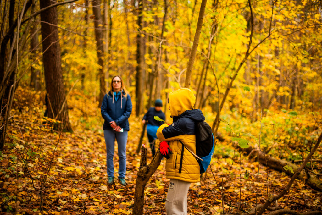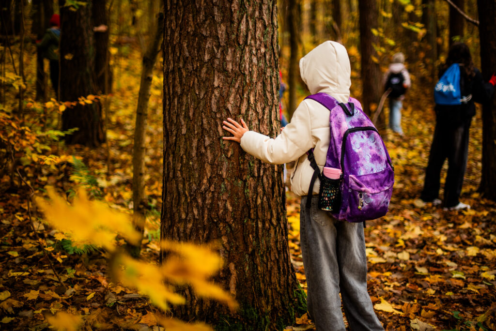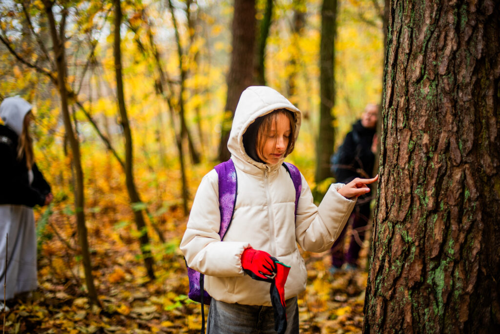 W ramach spotkania odbyła się także kąpiel leśna, którą poprowadziła Izabela Sałamacha. Dzieci starały się poznać las wszystkimi zmysłami. Dotykały kory drzew, oceniały dobiegające dźwięki i zapachy, obserwowały co znajduje się nad nimi i pod ich stopami. Miały pytania dotyczące otaczających je roślin. Były skupione i wyciszone.